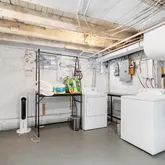 The unfinished, dry lower level provides abundant storage space and houses the washer and dryer, offering excellent utility.