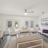 The open-concept living area features a...You are in luck! Chic Coastal Living is now possible, right in the Heart of Sarasota!