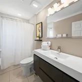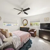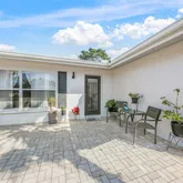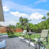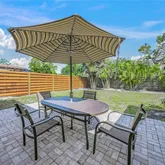Step outside into your private oasis, where a fully fenced backyard provides both privacy and serenity. The large paver patio is perfect for al fresco dining, shaded under a chic umbrella, while tropical landscaping adds a touch of paradise. Whether enjoying your morning coffee or hosting an evening get-together, this backyard is an entertainer’s dream.