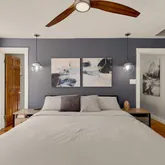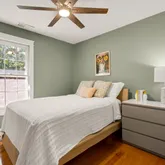 Additional interior enhancements include new air-sealed, blow-in fiberglass attic insulation exceeding R38 code (2023), updated HVAC computer (2024) with improved venting to the upper level (2020), Nest thermostat (2020), ceiling fans (2020-2021), and LED lighting throughout (2020-2025).