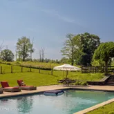 Experience timeless elegance and modern comfort at this exceptional four-bedroom solar-powered farmhouse, set on over five private acres adjacent to an historical Hudson River Valley estate and equestrian facility of over 650 acres. Originally constructed in the mid-1800s and thoughtfully modernized over the decades, the home was fully renovated in 2024 to include every contemporary amenity. Perfect for both relaxation and entertaining, the residence features 4 bedrooms, 4.5 baths, and comfortably accommodates up to seven guests. Gather with family and friends in the beautifully designed chef's kitchen, unwind and dine alfresco on the wraparound porch overlooking the river, or float in the heated saltwater pool surrounded by lush pick-your-own seasonal gardens, all less than 1.5 miles from Amtrak and less than 10-minute drive from the boutiques and fine dining of Rhinebeck Village. The property is thoughtfully equipped for effortless living and entertaining, featuring a beautifully appointed kitchen with an induction cooktop, microwave/convection oven, blender and smoothie maker, tea kettle, coffee maker, toaster oven, dishwasher, and a full-size refrigerator. Throughout the home, modern conveniences include a steam shower, whole-house generator, Bluetooth sound system, high-speed internet, porch fans, outdoor lighting, smart TV, standby property concierge services, a fully supplied wood-burning fireplace, and a comprehensive security system. The well-designed laundry and mudroom offer a washer and dryer, humidifier and dehumidifier, as well as an iron and ironing board for added comfort and ease. For equestrian enthusiasts, a private facility is available on the rental home property featuring a four-stall barn, four turnout paddocks, and a private outdoor arena. Nature trails are open for peak season rentals, leading to the main equestrian facilities which include large indoor and outdoor arenas with modern footing. Rates for dry or full board, as well as equestrian use are available upon request. Available year-round, with flexible rental terms including three-day minimums, weekly, monthly, and seasonal stays. Peak season runs from Memorial Day through Labor Day, as well as during HITS competitions, the New York State Sheep & Wool Festival, and long federal holiday weekends throughout the year. Annual rates available upon request. Rentals 30-days and longer include weekly cleaning service. Rental Rates in USD