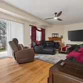 - Great/Family Room: Fireplace - Woodburning, Floor - Laminate, Sliding Door