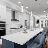 - Kitchen Features: Breakfast Bar, Cabinets White, Eat-in Kitchen, Kitchen Island, Pantry, Stone Counters, View to Family Room