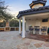 - Exterior Features: Covered Patio, Bar-B-Que Pit/Grill, Privacy Fence, Chain Link Fence, Wrought Iron Fence, Sprinkler System, Special Yard Lighting, Mature Trees, Outdoor Kitchen