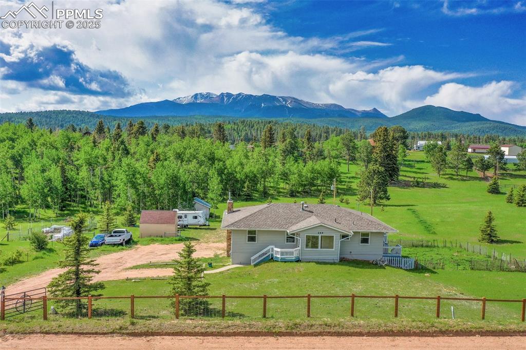 Charming Country Home on 2 Acres with Breathtaking Pikes Peak Views! Welcome to your dream retreat, nestled on a serene 2-acre lot just minutes from downtown Woodland Park. This beautifully maintained country home offers the best of Colorado living, with sweeping views of Pikes Peak, a mix of open meadowland and tranquil aspen forest, and plenty of room for your horses—or simply to enjoy the peace and privacy. The main level includes three generous bedrooms, while the fully finished lower level adds...Charming Country Home on 2 Acres with Breathtaking Pikes Peak Views! Welcome to your dream retreat, nestled on a serene 2-acre lot just minutes from downtown Woodland Park. This beautifully maintained country home offers the best of Colorado living, with sweeping views of Pikes Peak, a mix of open meadowland and tranquil aspen forest, and plenty of room for your horses—or simply to enjoy the peace and privacy. The main level includes three generous bedrooms, while the fully finished lower level adds two more large bedrooms, a cozy hallway nook, and a versatile laundry area. Whether you need extra room for guests, a home office, or a hobby space, this layout has you covered. Outside, you'll find multiple outbuildings for storage or projects, plus a charming clubhouse tucked among the aspens—perfect for play, relaxing, or creative inspiration. Don’t miss your chance to experience this peaceful, picturesque setting with modern comforts and room to roam. Schedule your private showing today—your mountain dream home awaits!