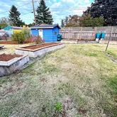 - Exterior Features: Covered Patio, Fenced, Garden, Raised Beds, Tool Shed, Yard