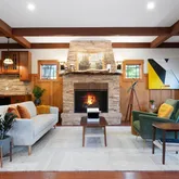 - Fireplace Features: Double Sided, Living Room, Primary Bedroom, Raised Hearth, Stone