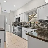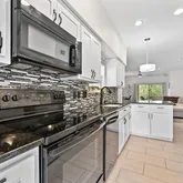 -Efficiently-designed kitchen with quartz countertops, modern tile backsplash, and ample cabinetry