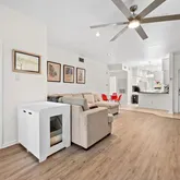 -New laminate flooring in living areas and bedrooms; tile flooring in kitchen and baths