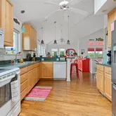 - Interior features: Bar, Cathedral Ceilings, Fireplace- Gas, Wood Flooring, Skylight, Smoke/Fire Alarm, Storage, Walk in Closet, Wall to Wall Carpet, Tile Flooring