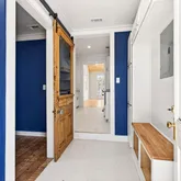 This beautifully renovated 2 bedroom, 2 bathroom home, originally built in 1940, offers the perfect blend of historic character and modern craftsmanship. Ideally located near downtown Biloxi and just seconds from the main gate of Keesler Air Force Base, this property provides unbeatable access to casinos, boating, fishing, beaches, golf, dining, and entertainment. The exterior features three-sided wood lap siding trimmed with Hardie plank wood-grain accents, with new Hardie board and batten siding on the front elevation. The home is built on brick piers with wood slats and latticework enclosing the crawl space. Original historic elements including the transom, front door, and sidelights remain fully functional and preserved. Impact-rated 6-over-6 double-hung aluminum windows add durability and efficiency. A Blink security system includes five exterior cameras and a doorbell camera. Inside, the home showcases 5-inch solid heart pine flooring throughout the living room and bedrooms, custom trim work, and solid-core interior doors that coordinate with soft-close shaker cabinetry throughout, including custom mudroom lockers. The living area features an antique heart pine accent wall and a dramatic 13-foot vaulted tongue-and-groove pine beadboard ceiling. The kitchen, bathrooms, and mudroom are finished with custom white hexagon tile flooring. The kitchen offers custom cabinetry with soft-close shaker doors, brushed brass hardware, butcher block countertops, a pot filler, and a custom tile backsplash. Bathrooms feature custom tile shower surrounds with brushed brass trim. The primary suite includes a tray ceiling, walk-in closet, custom tiled shower, and dual-bowl vanity. A custom sliding antique barn door leads to the laundry room, accented by end-grain antique beam flooring. Additional upgrades include a new HVAC system with new ductwork, spray-foam insulated roof rafters, and a heated and cooled attic with wood flooring that could serve as a bonus space (accessible via attic drop-down stairs). Outside, enjoy a double driveway and a new 6-foot privacy fence. This one-of-a-kind 2 bedroom, 2 bathroom home offers historic charm, high-end finishes, and modern systems in one of Biloxi's most convenient and desirable locations—ideal as a primary residence, second home, or investment opportunity.