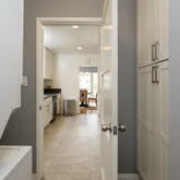 appliances and custom white shaker cabinets. It adjoins a charming powder room and separate laundry