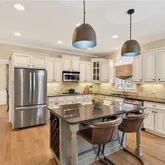 - Kitchen Features: Cabinets White, Eat-in Kitchen, Kitchen Island, Pantry, Stone Counters, View to Family Room, Wine Rack