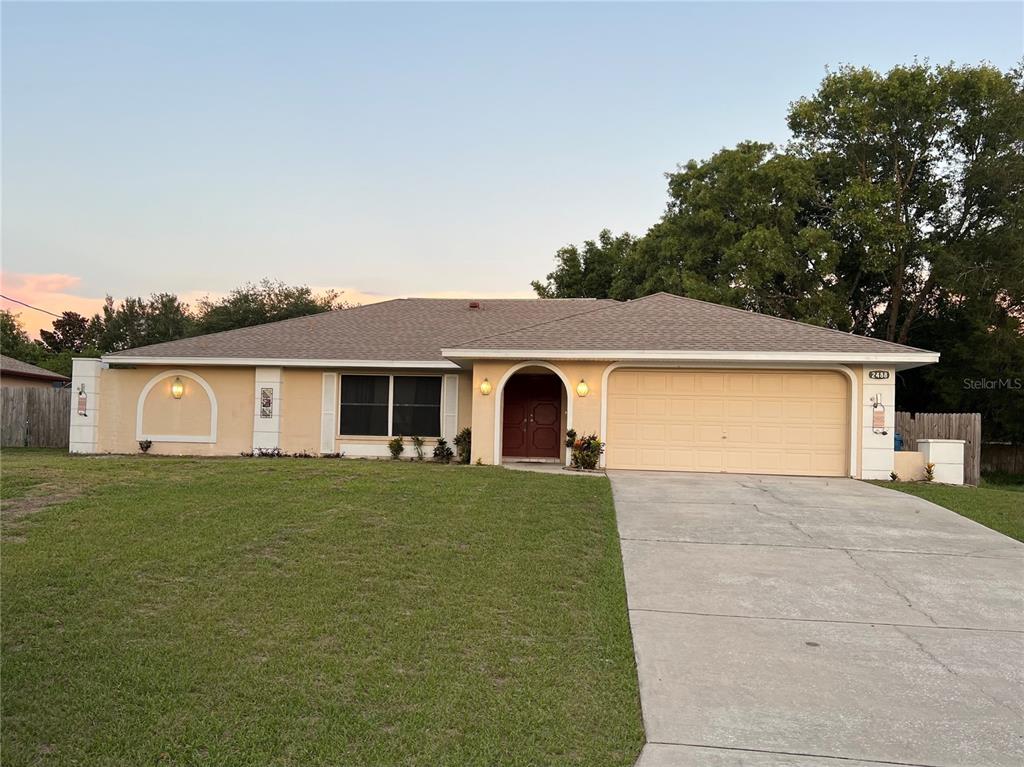 inside laundry, a 2 car garage and a florida room/lanai not to mention the large fenced in yard! This home is on a large 0.2 acre lot and offers a long driveway that is can accomodate several cars if needed. From there double doors will lead you inside this spacious, updated home. The home has a split bedroom plan with a large master bedroom that has a walk in closet and master a bathroom that has been updated. There was an addition to the house, which is a large room that could be used as an office, playroom, music room or an additional bedroom but without a closet. On the other side of the home are two more bedrooms and a second bath, both with lots of storage too! Lots of the updates were done in 2014 such as the new kitchen, granite counters, new A/C and new roof! There is No HOA, no Deed Restrictions, no CDD fees here, county water and septic all to save you money! Call today to schedule your showing before it is gone!