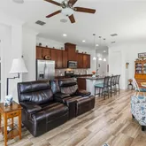- Interior Features: Ceiling Fan(s), Crown Molding, Eating Space In Kitchen, High Ceilings, Kitchen/Family Room Combo, Living Room/Dining Room Combo, Open Floorplan, Primary Bedroom Main Floor, Solid Wood Cabinets, Split Bedroom, Thermostat, Walk-In Closet(s), Window Treatments