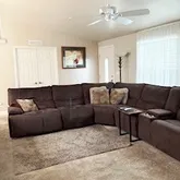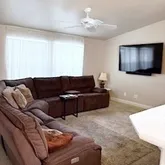spacious great room, gourmet kitchen and dining room with tons of storage. Refrigerator and Washer + Dryer included. The master suite is in the back