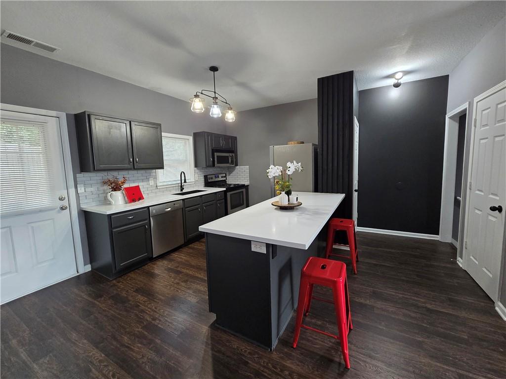 - Kitchen Features: Breakfast Bar, Cabinets Other, Kitchen Island, Pantry, Solid Surface Counters, View to Family Room