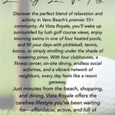 - Common Amenities: Clubhouse, Fitness Center, Golf Course, Pickleball, Pool, Sauna, Shuffleboard Court, Spa/Hot Tub, Tennis Court(s)