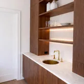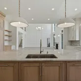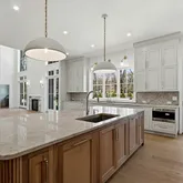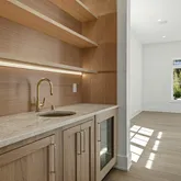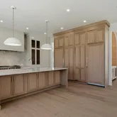 The kitchen is a true showpiece—meticulously designed with custom cabinetry, enchanting stone, an expansive island, and a full suite of Sub-Zero and Wolf appliances. A stunning butler’s pantry adorned with arched white oak millwork elegantly connects the kitchen to the formal dining room, creating a seamless flow for both intimate dinners and large-scale entertaining.