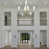 A dramatic glass entry door and stunning herringbone white oak floors set the tone, opening to a breathtaking double-height foyer where soaring ceilings and uninterrupted...Introducing a newly constructed architectural statement set on pristine, private grounds in the heart of Sands Point. Encompassing approximately 6,875 square feet, this exceptional residence seamlessly blends striking modern design with the finest materials and craftsmanship, delivering a living experience of rare scale and sophistication.