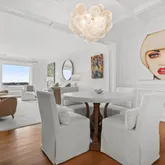 - Public Remarks: Million dollar water views define this stunnning, in-town Penthouse right off of Greenwich Ave. This turn-key, two-bedroom corner unit is enhanced by sweeping water vistas and a private balcony overlooking the Avenue. Striking architectural details elevate the sundrenched interior with hardwood floors, recessed paneled wainscoting, coffered dining room ceiling, and beautiful moldings throughout. Spacious entry flows into dining room open to an expansive living room with gas fireplace, outdoor access and huge picture window framing gorgeous water views; marble-clad chef's kitchen with breakfast bar seating for two; primary suite with built-ins, bedroom/den and powder room. In-unit laundry. Luxury doorman building w/ interior garage parking spot near elevator and storage unit. A must see!