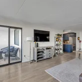 - Internet Remarks: Experience elevated living at Apogee, situated on an elevated site offering unobstructed views of the NYC skyline. This renovated $1,235 sq. ft. residence features an open-concept layout with two bedrooms and two full bathrooms, including a primary suite. The kitchen is equipped with granite countertops, stainless steel appliances, and dark wood cabinetry, complemented by refinished hardwood floors throughout. A private terrace provides direct views of Manhattan. Building amenities include a swimming pool, kiddy pool, tennis courts, fitness center, community room, and a playground. The unit includes two dedicated parking spaces (one indoor and one outdoor), with additional tiered parking options available for a monthly fee. Located within minutes of NYC public transportation, local schools, and shopping, this property offers a comprehensive amenity package in a professionally renovated building.
