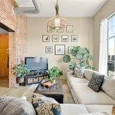 - Room Description: exposed brick, 12 ft ceilings, stained concrete floor, oversized windows, and Juliet balcony