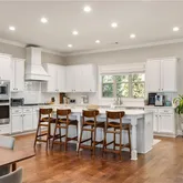 - Kitchen Features: Breakfast Bar, Cabinets White, Kitchen Island, Pantry, Stone Counters, View to Family Room, Other