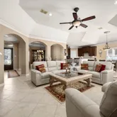 - Interior Features: Crown Molding, Double Vanity, Granite Counters, High Ceilings, Jetted Tub, Kitchen Family Room Combo, Pantry, Soaking Tub, Separate Shower, Tub Shower, Window Treatments, Ceiling Fans, Kitchen/Dining Combo, Living/Dining Combo, Programmable Thermostat