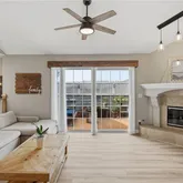 - Interior Features: Beamed Ceilings, Crown Molding, Unfurnished, High Ceilings, Ceiling Fan(s), Living Room Deck Attached, Recessed Lighting, Granite Counters