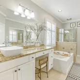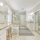 - Interior Features: Balcony, Crown Molding, Dry Bar, Double Vanity, Entrance Foyer, High Ceilings, Kitchen Island, Kitchen Family Room Combo, Bath In Primary Bedroom, Self Closing Cabinet Doors, Self Closing Drawers, Soaking Tub, Separate Shower, Tub Shower, Vanity, Vaulted Ceilings, Walk In Pantry, Window Treatments, Programmable Thermostat