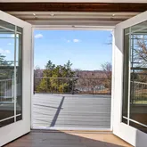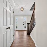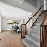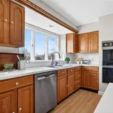 The main level features freshly refinished living spaces highlighted by new LVT flooring, updated baseboards, and abundant natural light. The oversized kitchen offers generous cabinetry, stainless appliances, including a Bosch dishwasher and flexibility for future expansion or customization. French doors open to a newly installed composite deck, perfectly positioned to take in views of the expansive common ground and tranquil water feature beyond, creating a peaceful backdrop rarely found in a neighborhood setting.