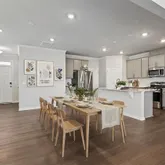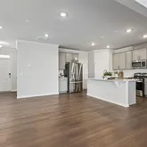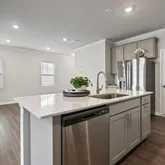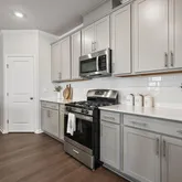 Premium Quartz countertops and a massive entertaining island. Elegant grey cabinetry complemented by a modern tiled backsplash. Stainless steel appliances with a vented-out microwave. A spacious walk-in pantry for ample storage. Refined Second Level