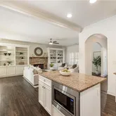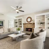 High ceilings and hardwood...Located in the sought-after Drew Valley neighborhood, this four-bedroom, three-and-a-half-bath Craftsman was completely reimagined from the studs in 2012, blending timeless style with modern functionality. The open concept main living area centers around the kitchen with stainless steel appliances, gas cooktop, granite countertops, oversized island, and walk-in pantry, all overlooking the dining space and spacious family room with custom built-ins and cozy stone fireplace.