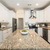 - Kitchen Features: Cabinets White, Kitchen Island, Pantry Walk-In, Stone Counters, View to Family Room