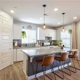 - Room Kitchen Features: Kitchen Island, Kitchen Open to Family Room, Quartz Counters, Remodeled Kitchen, Self-closing cabinet doors, Self-closing drawers