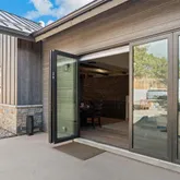 - Room Description: Vaulted. Gas FP, folding doors to open up to back patio
