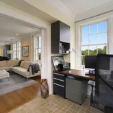 Additional features include extra storage, washer/dryer, windows replaced 2 years ago, new central air, on-site garage parking available, and a magnificent entry foyer. 2 Fireplaces - gas in foyer and wood-burning in living room - custom Poliform Closets, three bright window lined exposures south, east and west, including a clear view of The Washington Monument. Custom lighting throughout, pet friendly, & low co-op fee includes taxes and heat.