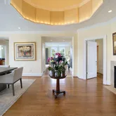 The living room is double sized and easily accommodates a piano, has a fireplace and master carpenter built-ins and a service bar. Formal dining leads to a wonderful, large cook's kitchen with center isle/breakfast bar, top of the line appliances including two dishwashers, 2 ovens, warming drawer, gas cooking and sub zero refrigerator and wine refrigerator.
