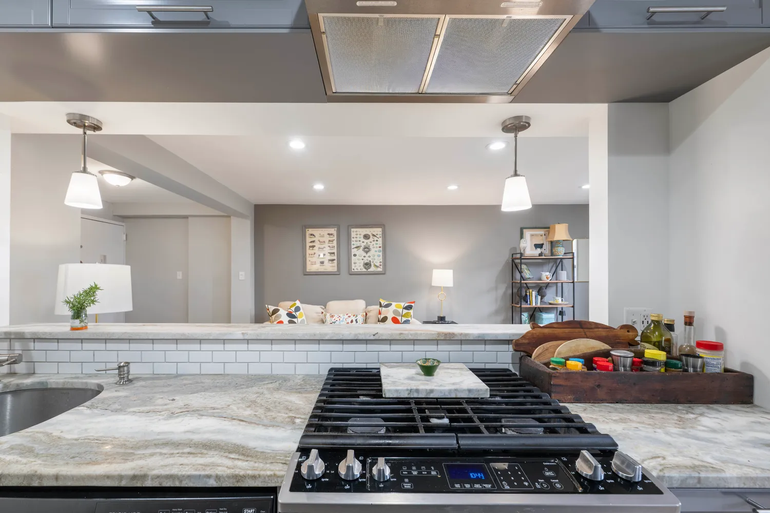 Inside, sunlight fills the open living space, highlighting the elegant hardwood floors and versatile layout designed to suit any lifestyle. The updated, open kitchen boasts stainless steel appliances, ample cabinetry, granite countertops, and a breakfast bar.