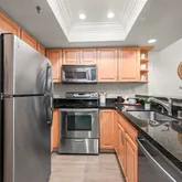 - Kitchen Features: Breakfast Bar, Stone Counters, Dishwasher, Electric Range/Cooktop, Disposal, Ice Maker Hookup, Microwave, Refrigerator, Self-Cleaning Oven
