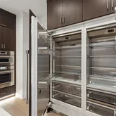 - Kitchen Appliances: Builtin Oven, Builtin Range, Dishwasher, Disposal, ENERGYSTARQualified Appliances, Free Standing Range, Free Standing Refrigerator, Island, Microwave, Pantry, Plumbed For Ice Maker, Quartz, Range Hood, Stainless Steel Appliance, Tile, Wine Cooler