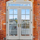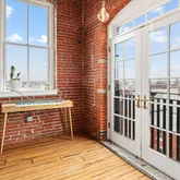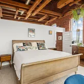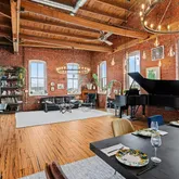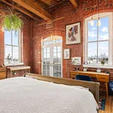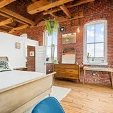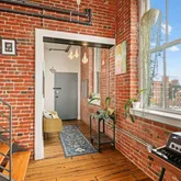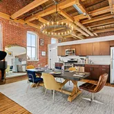 As you step into this top-floor corner unit, you're greeted by an abundance of natural light streaming through expansive windows, highlighting the stunning exposed brick and original wood beams. The open-concept layout is accentuated by high ceilings, hardwood floors, and custom-designed fixtures throughout, creating a sophisticated yet inviting atmosphere.