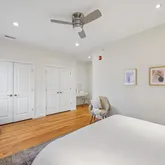 Upstairs, the primary suite includes a walk in glass shower and exceptionally large double closets, part of the home’s impressive storage throughout. A second generously sized bedroom, walk in closet, a full hall bath, and in unit laundry complete this level with comfort and ease.