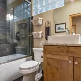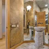 - Room Description: Guest bathroom, tile floors custom pedestal sink, grotto feeling