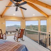 - Room Description: VIEWS, custom wood wall carvings, walk out to private deck, gas double sided fireplace, carpet