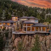 - Room Description: VIEWS of Mt. Evans, walk out to spacious deck with rock outcroppings and a gas fire pit, 20' windows, gas fireplace, water feature with waterfall