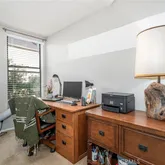 The primary bedroom not only offers spacious living but also includes a built-in bookshelf, adding both functionality and a touch of elegance. Perfect for avid readers or those who appreciate stylish storage solutions, this feature enhances the room's charm and utility. An additional office desk space provides ample room for work or study, enhancing convenience in your daily life. The home also includes in-unit laundry with a washer and dryer, ensuring that household tasks are effortlessly managed.