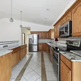 - Appliances: Water Softener, Free-Standing Range, Dishwasher, Refrigerator, Disposal, Microwave, Hard Surface Counters