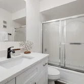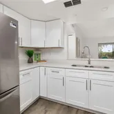 The primary suite includes a walk-in closet and a spacious bathroom, creating a true private retreat. The home also features a brand-new kitchen with modern cabinets, quartz countertops and appliances, plus the convenience of an in-unit washer and dryer hookup.